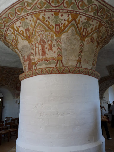 Ale ve 2. patře také byla vyobrazení, cituji z pis.cz: Na stropě byly od 2. 1/2 17. stol. malby zachycující 13 výjevů z 30-leté války, r. 1783 byly překryty dnešním dřevěným stropem. Otázka je, co tam bylo původně, před třicetiletou válkou, předpokládám, že třináctka je centrální obraz a dvanáct radiálních. Mohly tam být alegorie souhvězdí zvěrokruhu.